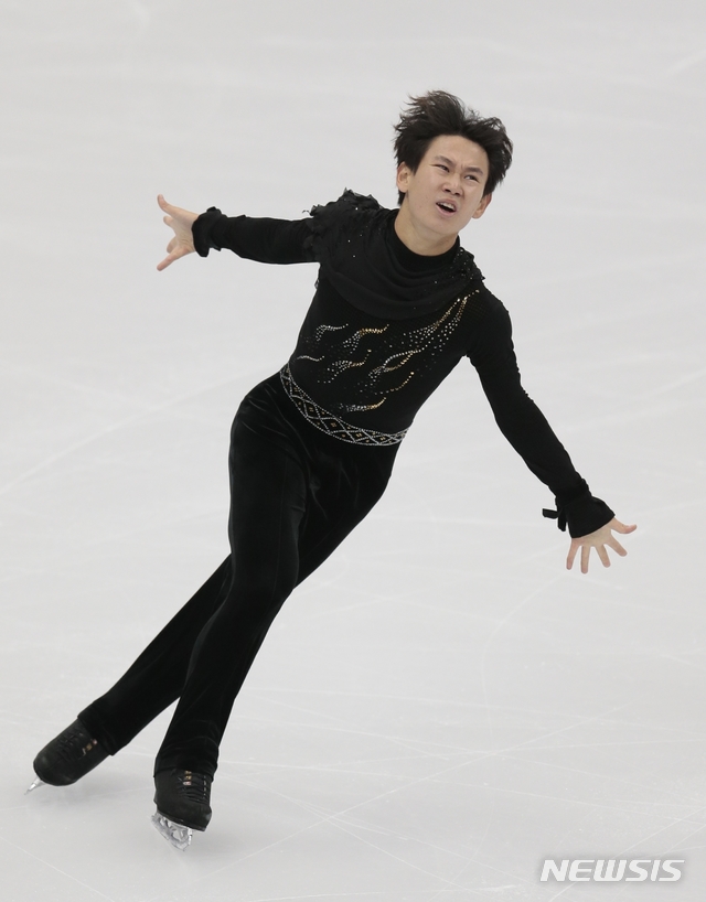【모스크바=AP/뉴시스】2017년 10월21일 러시아 모스크바에서 열린 국제빙상연맹(ISU) 로스텔레콤 컵 대회에서 카자흐스탄의 한국계 피겨 스케이팅 선수 데니스 텐이 프리 스케이팅 연기를 펼치고 있다. 소치 올림픽 동메달리스트인 데니스 텐은 19일 카자흐 수도 알마티에서 강도의 칼에 찔려 사망했다. 그는 구한말 의병장으로 활동했던 민긍규 장군의 후손이다. 2018.7.20
