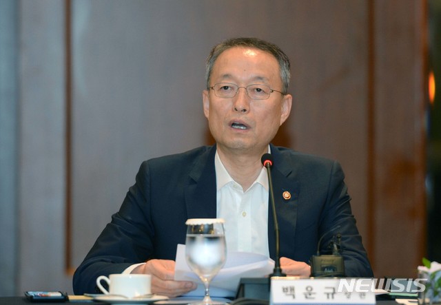 【서울=뉴시스】 백운규 산업통상자원부 장관이 24일 오후 서울 삼성동 그랜드 인터컨티넨탈호텔 국화룸에서 열린 '신산업 규제혁신 토론회'에 참석해 모두발언을 하고 있다. 2018.07.24. (사진=산업통상자원부 제공)