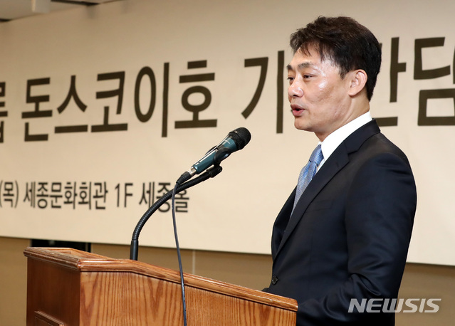 【서울=뉴시스】이영환 기자 = 최용석 신일그룹 대표이사 회장이 26일 오전 서울 종로구 세종문화회관 세종홀에서 신일그룹 돈스코이호 기자간담회에 참석해 모두발언을 하고 있다.
