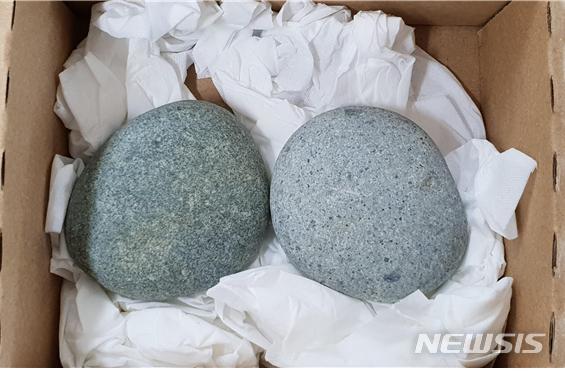 【통영=뉴시스】신정철 기자 = 국립공원구역인 경남 거제시 동부면 학동 몽돌해수욕장에서 몽돌 2개를 가져간 미국 뉴저지에 거주하는 13살 어린이가 사죄편지와 함께 몽돌(사진)을 반환해 잔잔한 파문을 일으키고 있다..