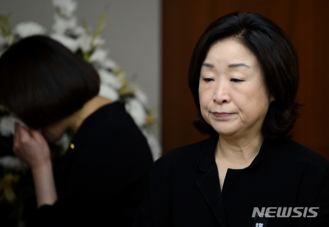 【서울=뉴시스】이영환 기자 = 고(故) 노회찬 정의당 의원의 장례 마지막 날인 27일 오전 서울 신촌 세브란스병원 장례식장에서 발인식이 엄수되고 있는 가운데 심상정 의원이 슬픔에 잠겨있다. 2018.07.27.
