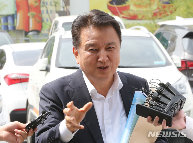 【성남=뉴시스】전진환 기자 = 김영환 전 바른미래당 의원이 27일 오전 여배우 스캔들로 이재명 지사를 공직선거법 위반 등 혐의로 고발한 것과 관련해 피고발인 신분으로 조사를 받기 위해 경기도 성남 분당경찰서에 도착해 기자들의 질문에 답하고 있다. 2018.07.27.