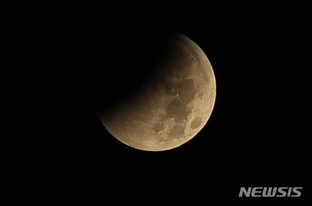 【제주=뉴시스】우장호 기자 = 28일 오전 제주시 노형동에서 바라본 서쪽하늘에 우주쇼인 '개기월식'이 진행되고 있다. 개기월식이란 태양과 지구, 달이 일직선에 놓이며 달이 지구 그림자 속으로 들어가는 현상을 말한다. 2018.07.28.