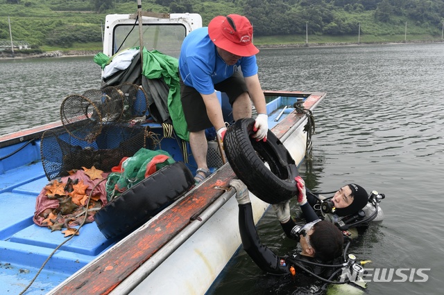 【광양=뉴시스】김석훈 기자 = 29일 포스코 광양제철소(소장 김학동)는 제철소 내 클린오션봉사단이 전남 여수시 묘도 광양포 방파제 주변에서 바닷속 쓰레기를 수거하는 등 수중정화 활동을 펼쳤다고 밝혔다. 스킨스쿠버 취미 동호회로 시작한 봉사단은 포스코 지원과 함께 사내 전문재능봉사단으로 매월 2차례 수중 봉사활동을 한다. 2018.07.29. (사진=광양제철소 제공)