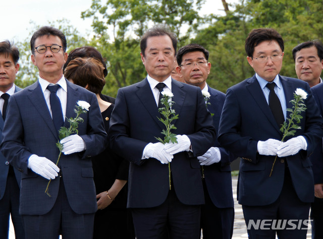 【김해=뉴시스】김상우 기자 = 자유한국당 김병준 비상대책위원장은 30일 경남 김해시 봉하마을 고 노무현 전 대통령의 묘역을 참배했다.