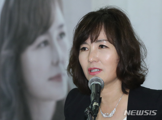 【서울=뉴시스】조수정 기자 = 공지영 작가가 30일 오전 서울 중구 프레스센터에서 장편소설 '해리' 출간 기자간담회를 하고 있다. 2018.07.30. [email protected]