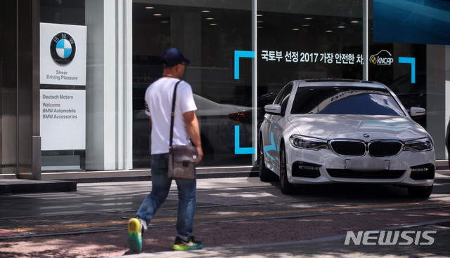 【서울=뉴시스】김선웅 기자 = BMW가 화재사고로 인한 리콜 결정에도 불구하고 판매량이 지속적으로 증가하고 있는 30일 오후 서울 시내의 한 BMW 매장의 모습이 보이고 있다. 2018.07.30.