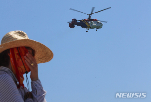 【제주=뉴시스】우장호 기자 = 제주에 관광 온 30대 여성이 실종된 지 7일이 지난 가운데 1일 오전 제주시 구좌읍 세화리 세화포구 인근 상공을 제주해경 소속 헬기가 수색하고 있다. 헬기 아래로 실종자 가족이 오열하고 있다. 2018.08.01.