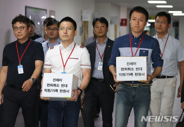 면허취소 탄원서 들고 청문회장 향하는 진에어 직원들