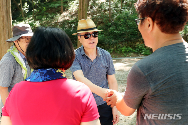 장태산휴양림 산책중인 문재인 대통령