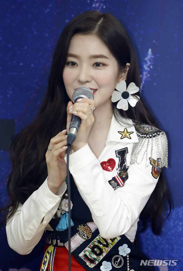 【서울=뉴시스】최동준 기자 = 걸그룹 레드벨벳 아이린이 5일 서울 송파구 올림픽공원 SK핸드볼경기장에서 열린 두 번째 콘서트 '레드메어' 기자회견에서 인사말을 하고 있다. 2018.08.05.