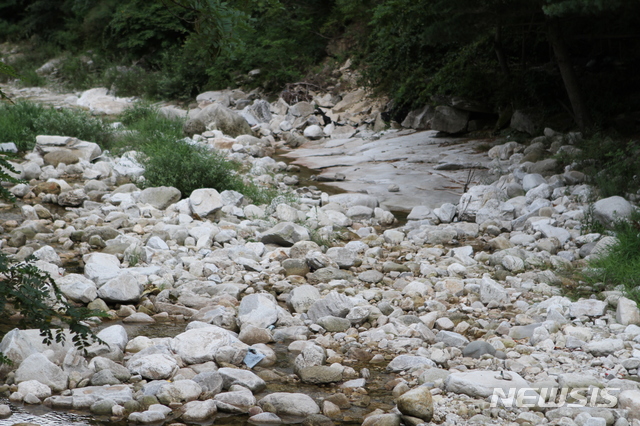 【화천=뉴시스】한윤식 기자 = 6일 최악의 폭염과 함께 가뭄이 계속되면서 강원 화천 광덕계곡의 바닥이 드러나 피서객들의 발길이 뚝 끊겨 지역경기에 큰 타격을 입고 있다.2018.08.06.
