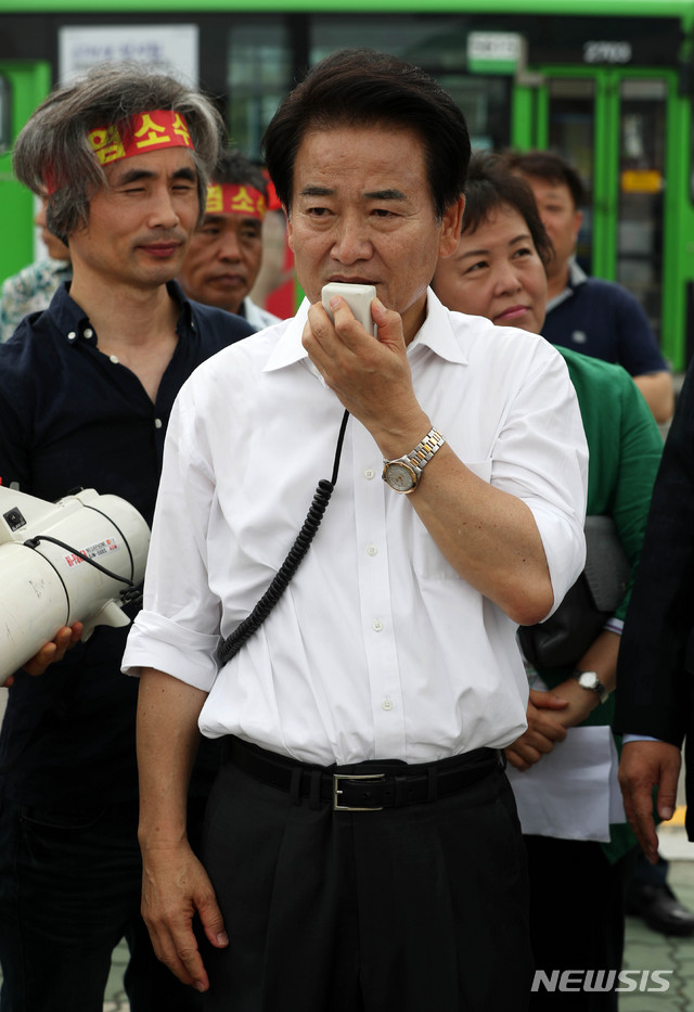 【서울=뉴시스】홍효식 기자 = 민주평화당 정동영 대표가 9일 오전 서울 여의도 국회 정문 앞에서 전국 염소 가격 폭락 비상대책위원회 주최로 열린 흑염소 산지가격 폭락에 따른 긴급수매 기자회견에 참석해 모두발언을 하고 있다.