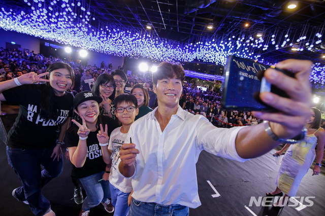 사진은 가수 김종국이 팬들과 '갤럭시 노트9'으로 셀피를 촬영하고 있다.