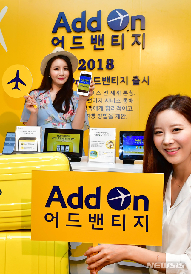 '애드 온 어드밴티지(Add-on Advantage)'는 항공권을 예약한 여행객에서 출발 당일까지 최대 51% 호텔 추가 할인혜택을 제공하는 신개념 여행 예약 서비스다. 2018.08.14. (사진=익스피디아 제공)