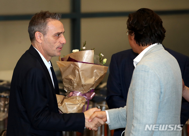 벤투 신임 감독은 코치진 4명과 함께 입국해 다음달 예정된 두 차례 평가전을 준비한다. 2018.08.20.
