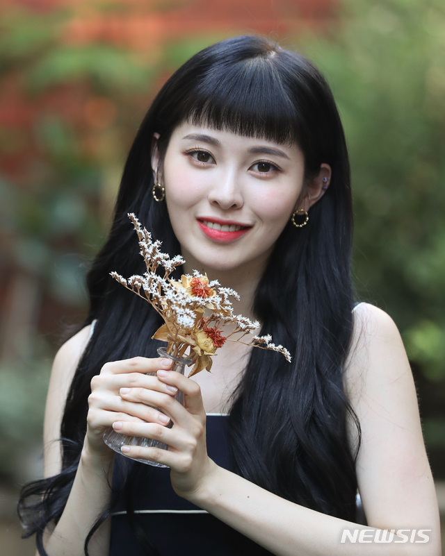 【서울=뉴시스】조수정 기자 = 그룹 '다이아' 예빈이 22일 오전 서울 강남구 신사동 카페 아카시아에서 인터뷰에 앞서 포즈를 취하고 있다. 2018.08.23.