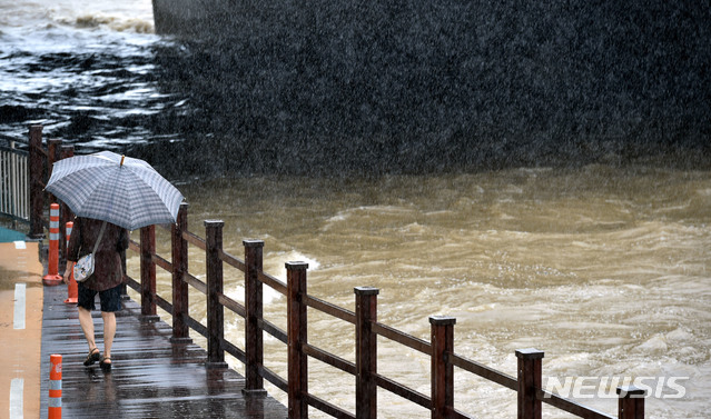 【대구=뉴시스】우종록 기자 = 많은 비가 내리며 대구에 호우경보가 내려진 27일 오전 대구 북구 대현동 칠성교 아래 신천동로가 빗물로 침수돼 교통이 통제되고 있다. 2018.08.27.