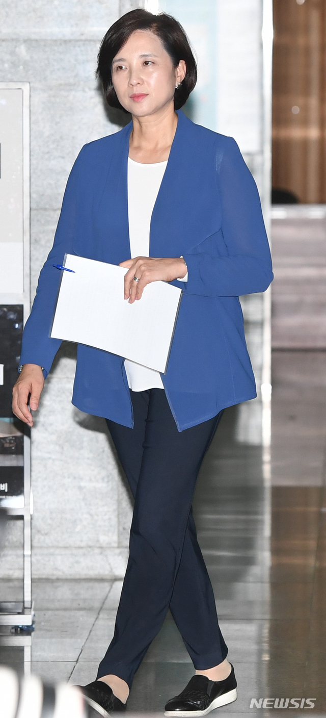 【서울=뉴시스】고승민 기자 = 사회부총리 겸 교육부 장관으로 지명된 더불어민주당 유은혜 의원이 30일 오후 서울 여의도 국회 의원회관을 나서고 있다. 2018.08.30.