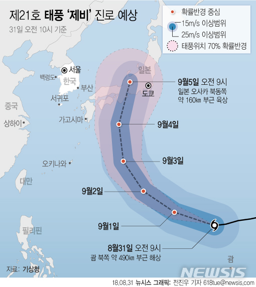 [그래픽]제21호 태풍 ‘제비’ 진로예상