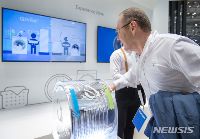 【서울=뉴시스】관람객들이 31일(현지시간) 독일 베를린에서 개막한 'IFA 2018' 삼성전자 부스를 둘러보고 있다. 2018.09.01.(사진=삼성전자 제공)