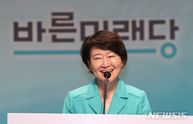 【서울=뉴시스】고승민 기자 = 2일 오후 서울 여의도 국회 의원회관에서 열린 바른미래당 당대표 및 최고위원, 전국청년위원장 선출대회에서 기호6번 권은희 당대표 후보가 인사말을 하고 있다. 2018.09.02.