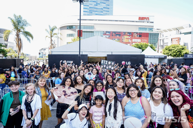 【서울=뉴시스】최동준 기자 = LG전자가 미국에서 방탄소년단의 월드투어 콘서트와 연계한 마케팅을 펼치며 젊은층의 마음을 사로잡고 있다. LG전자는 5일 미국 로스앤젤레스에서 열린 방탄소년단 월드투어 콘서트에서 LG전자 제품 체험은 물론 방탄소년단과 관련된 다양한 콘텐츠를 즐길 수 있는 'BTS 스튜디오'를 운영했다. 공연 관람객들이 BTS 스튜디오를 즐기고 있다. 2018.09.06. (사진=LG전자 제공)