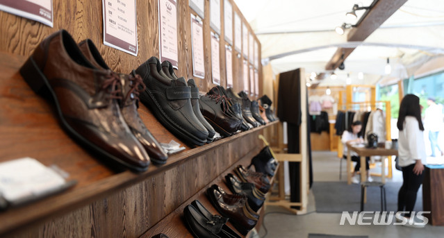 【서울=뉴시스】김선웅 기자 = 7일 오후 서울 중구 서울로 7017 목련마당에 위치한 팝업스토어에서 염천교 수제화거리 장인들이 만든 수제화가 판매되고 있다. 2018.09.07.