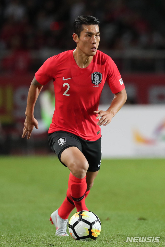 【고양(경기)=뉴시스】최진석 기자 = 7일 오후 경기 일산 고양종합운동장에서 열린 축구 대표팀 친선경기 대한민국과 코스타리카의 경기. 한국 이용이 패스할 곳을 찾고 있다. 2018.09.07.