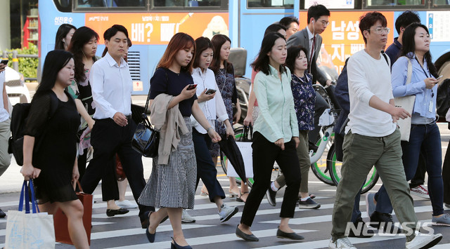 【서울=뉴시스】최진석 기자 = 일교차가 10도 이상 크게 벌어질것으로 예보된 10일 오전 서울 광화문 네거리에서 시민이 출근길 발걸음을 재촉하고 있다. 2018.09.10.
