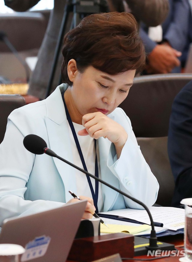 【서울=뉴시스】전신 기자 = 11일 청와대 본관에서 열린 국무회의에서 김현미 국토교통부 장관이 문재인 대통령의 모두발언을 듣고 있다. 2018.09.11.