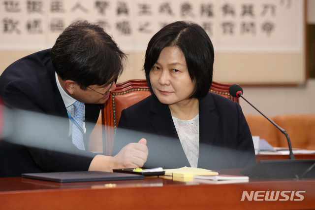 【서울=뉴시스】이종철 기자 = 11일 오전 서울 여의도 국회에서 열린 법사위 전체회의 이은애 헌법재판관 후보자 인사청문회에 출석한 이 후보자가 청문회 진행상황에 대해 설명을 듣고 있다. 2018.09.11.