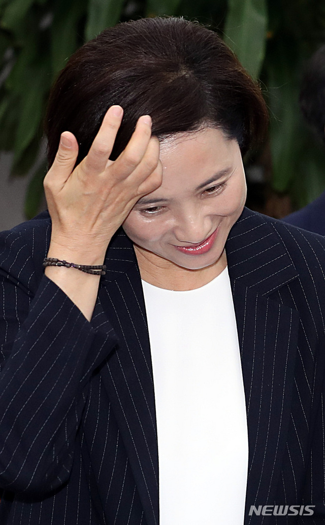 【서울=뉴시스】이종철 기자 = 19일 오전 서울 여의도 국회에서 열린 교육위원회 제2차 전체회의 유은혜 사회부총리 겸 교육부 장관 후보자 인사청문회에서 유 후보자가 머리를 쓸어올리고 있다. 2018.09.19.