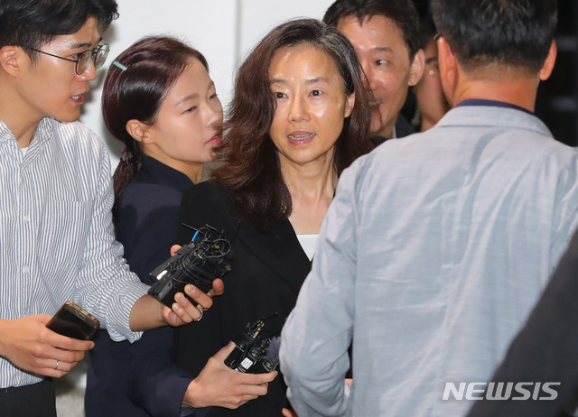 【의왕=뉴시스】배훈식 기자 = '문화계 블랙리스트' 등 혐의로 구속 수감 중이던 조윤선 전 문화체육관광부 장관이 22일 오전 경기 의왕시 서울구치소에서 구속만기로 석방되어 지지자들의 향해 밝은 표정을 하고 있다. 2018.09.22.