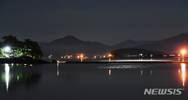 【남해=뉴시스】차용현 기자 = 민족 최대명절 추석인 24일 오후 경남 남해군 남해읍 선소마을 바닷가에서 바라본 하늘에 둥근 보름달이 떠올라 남해바다를 비추고 있다. 2018.09.24.