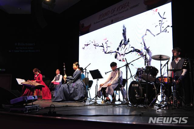 【암만(요르단)=뉴시스】 채정병 기자 = 2일(현지시간) 퓨전국악팀 이어랑의 ‘Sound of Korea’ 공연이 암만 하야 문화센터에서 펼쳐졌다.