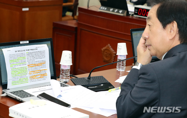 색연필로 밑줄 그은 김성태 의원의 질의서