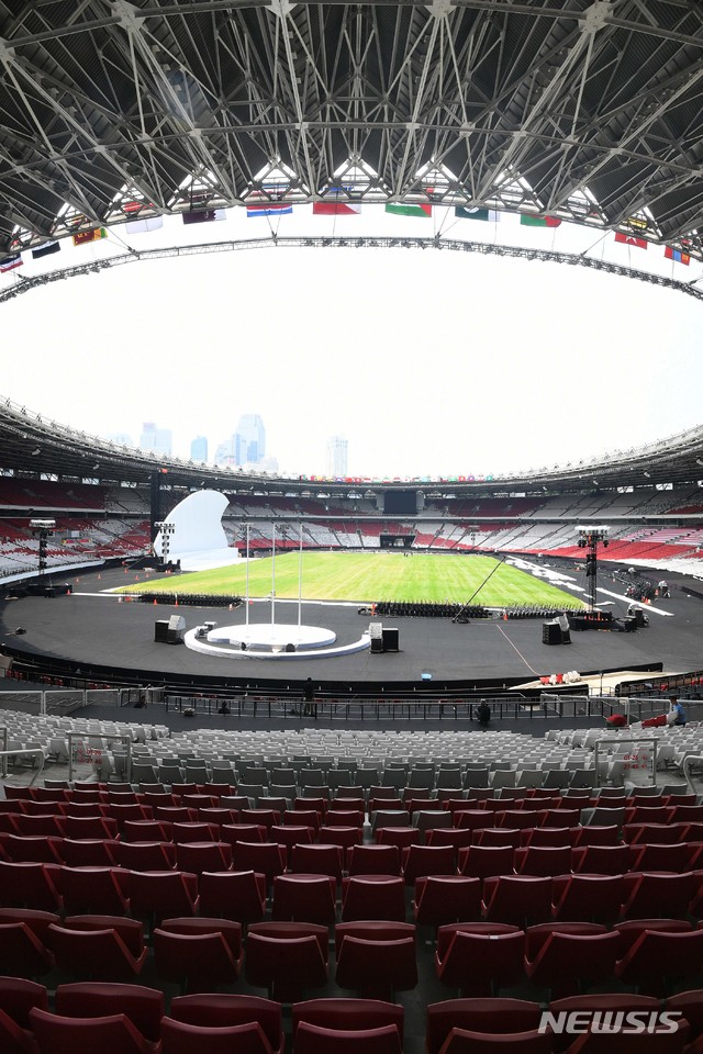 【자카르타(인도네시아)=뉴시스】 사진공동취재단 = '2018 인도네시아 장애인아시아경기대회' 개막을 하루 앞둔 5일 오전(현지시각) 개막식이 열릴 인도네시아 자카르타 겔로라 붕 카르노(GBK) 주경기장의 모습. 2018.10.05.