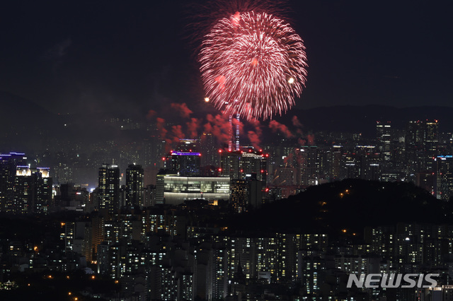 【서울=뉴시스】6일 서울 영등포구 여의도에서 열린 '한화와 함께하는 서울세계불꽃축제 2018'가 서울 도심의 빌딩숲과 어우러져 밤하늘을 수놓고 있다. 2018.10.07.(사진=박상문 사진가 제공)