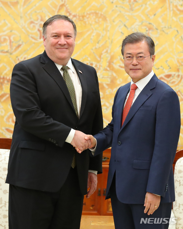 문재인 대통령, 폼페이오 미 국무장관과 악수
