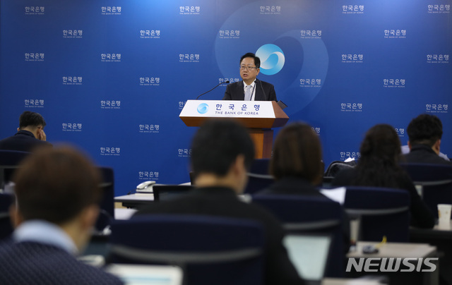 【서울=뉴시스】김진아 기자 = 노충식 금융통계부장이 11일 서울 중구 한국은행 기자실에서 2018년 8월 국제수지(잠정) 기자설명회를 하고 있다.