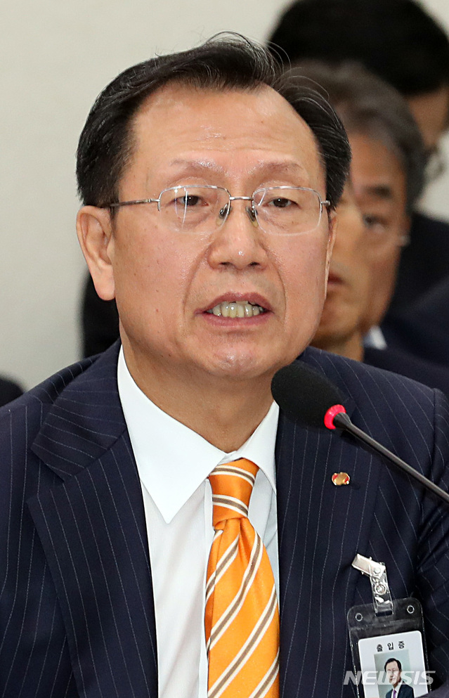 【서울=뉴시스】이종철 기자  = 16일 오전 서울 여의도 국회에서 열린 산업통상자원중소벤처위원회의 한국전력공사, 한국전력거래소, 한전KPS, 한전 KDN, 한국전력기술, 한국스마트그리드사업단 국정감사에 출석한 김종갑 한국전력공사 사장이 의원 질의에 답변하고 있다. 2018.10.16.
