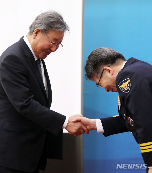 민갑룡 경찰청장과 인사 나누는 최불암