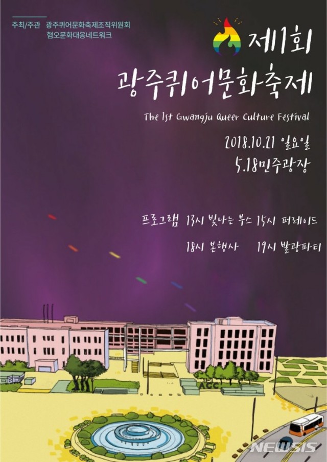 【광주=뉴시스】변재훈 기자 = 광주퀴어문화축제 조직위원회와 혐오문화대응네트워크는 21일 오후 광주 동구 5·18민주광장과 금남로 일대에서 '광주, 무지개로 발光하다'를 주제로 제1회 광주퀴어문화축제를 개최한다. 2018.10.21. (사진=광주퀴어문화축제 조직위원회)