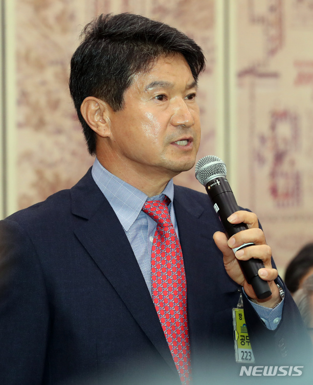 【서울=뉴시스】박영태 기자 = 23일 서울 영등포구 여의도 국회에서 열린 국회 문화체육관광위원회의 대한체육회, 국민체육진흥공단, 한국체육산업개발, 태권도진흥재단, 대한장애인체육회 오후 국정감사에서 곽용운 대한테니스협회장이 의원 질의에 답변하고 있다. 2018.10.23.