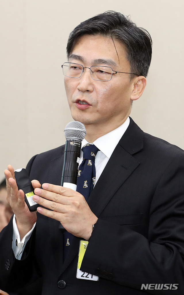 【서울=뉴시스】이종철 기자 = 24일 오후 서울 여의도 국회에서 열린 보건복지위원회의 한국보건의료인국가시험원, 국립중앙의료원, 한국보건의료연구원, 한국의료분쟁조정중재원의 국정감사에 참고인으로 출석한 이국종 교수가 의원 질의에 답변을 하고 있다. 2018.10.24.