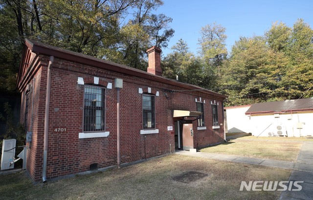 【서울=뉴시스】 사진공동취재단 = 2일 오후 서울 용산 미군기지 내 버스투어가 열렸다. 일제시대 사용된 일본군 감옥과 터. 2018.11.02.