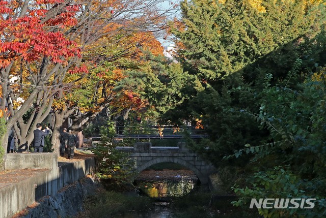 【서울=뉴시스】 사진공동취재단 = 2일 서울 용산구 용산미군기지에서 열린 '용산기지 첫 버스투어'에서 참석자들이 서울에서 유일하게 복개되지 않은 하천인 만초천을 둘러보고 있다.