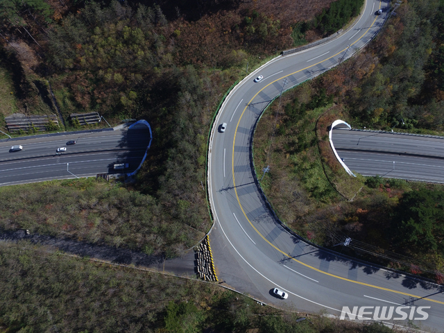 【강릉=뉴시스】김경목 기자 = 가을이 깊어가고 있는 4일 오후 강원 강릉시 성산면 영동고속도로(터널 구간)와 대관령 옛 도로(지방도 456호선)를 따라 차들이 이동하고 있다. 2018.11.04.
