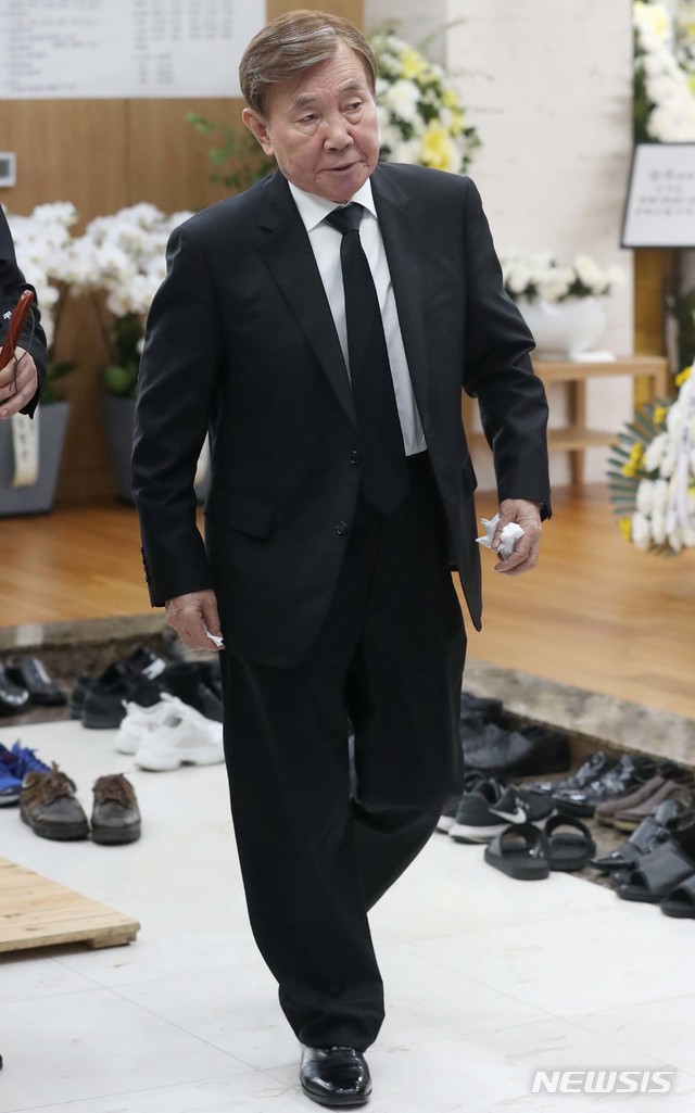 【서울=뉴시스】사진공동취재단 = 배우 양택조가 5일 오후 서울 송파구 풍납동 서울아산병원 장례식장에 마련된 故 신성일의 빈소를 찾아 조문한 뒤 빈소를 나서고 있다. 2018.11.05.